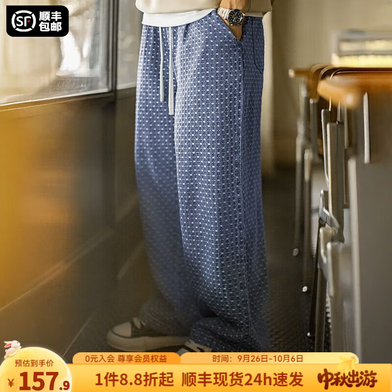 马登工装美式复古满版提花水洗丹宁牛仔裤直筒垂感宽松休闲长裤子男秋 牛仔水洗蓝 XL