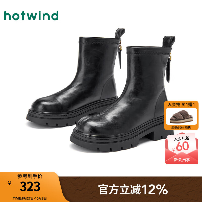 热风【商场同款】厚底时装靴女2025年冬季新款百搭短靴小个子增高靴子 01黑色 36