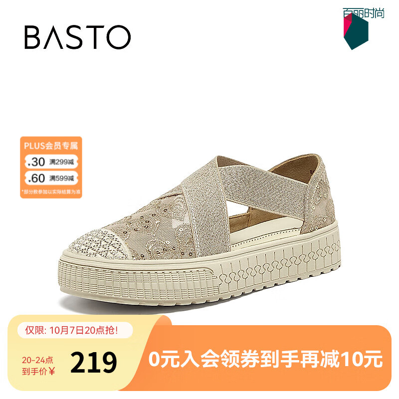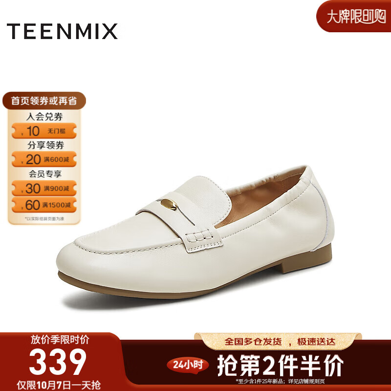 天美意乐福鞋商场同款纯色复古百搭通勤休闲女鞋2025秋新款 米色 38