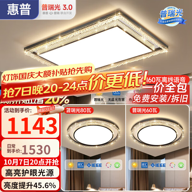 惠普意式轻奢高级感客厅水晶吸顶灯新款主灯现代简约大气中山灯具套餐 套餐2-两室一厅-110cm