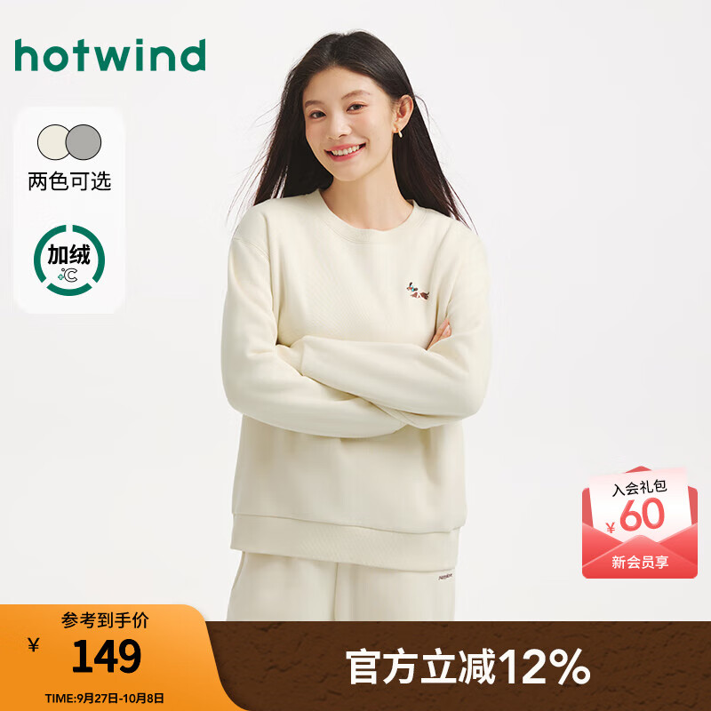 热风(Hotwind)2025年冬季新款女士萌宠圆领加绒卫衣 03米色 S