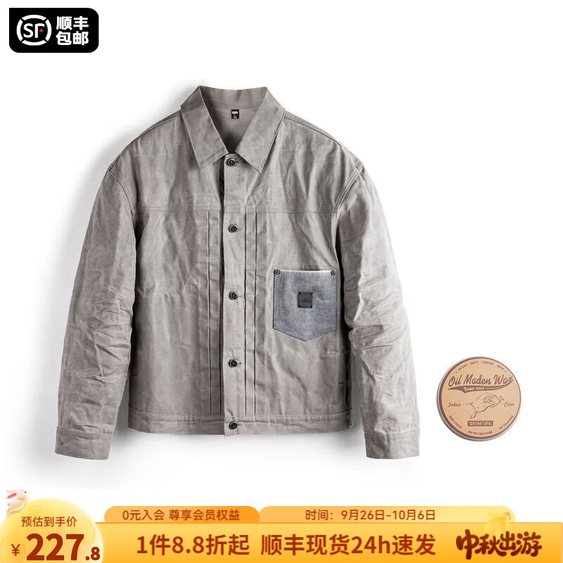 马登工装美式复古油蜡夹克vintage纯棉猎装硬挺灰色新款修身外套男秋 灰色夹克+油蜡组合装 XL