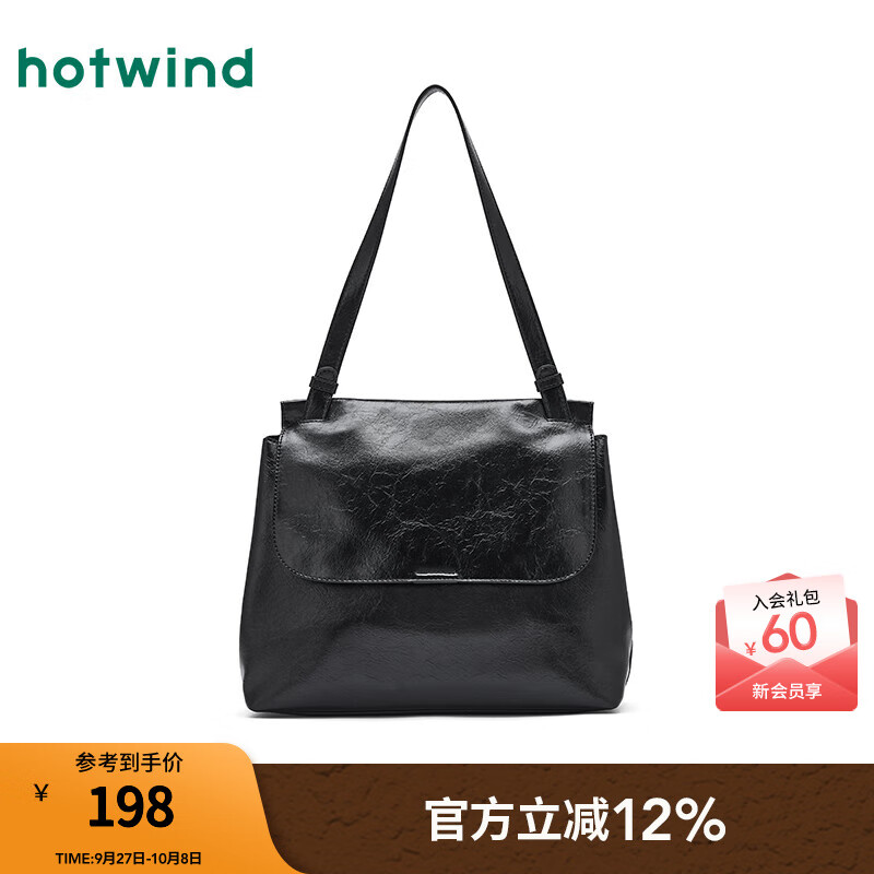 热风【商场同款】女士包包25年秋新款简洁翻盖单肩包时尚大容量流浪包 01黑色 F