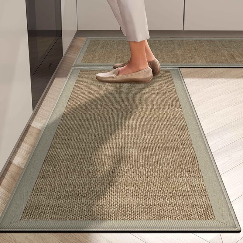 纤苏厨房地垫防滑防水可擦免洗家用耐脏门口脚垫长条防潮垫子 仿剑麻纹浅边-厨房款 50x80cm+50x150cm
