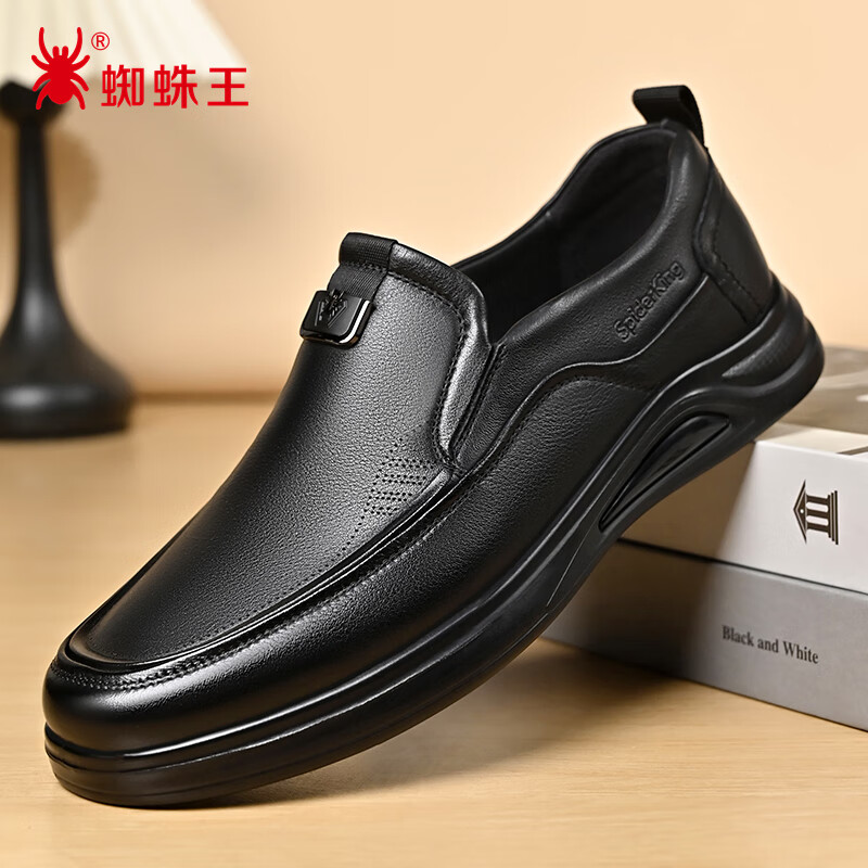 蜘蛛王男鞋秋季新款休闲男士皮鞋真皮透气爸爸鞋套脚 2A36F028 黑色 43