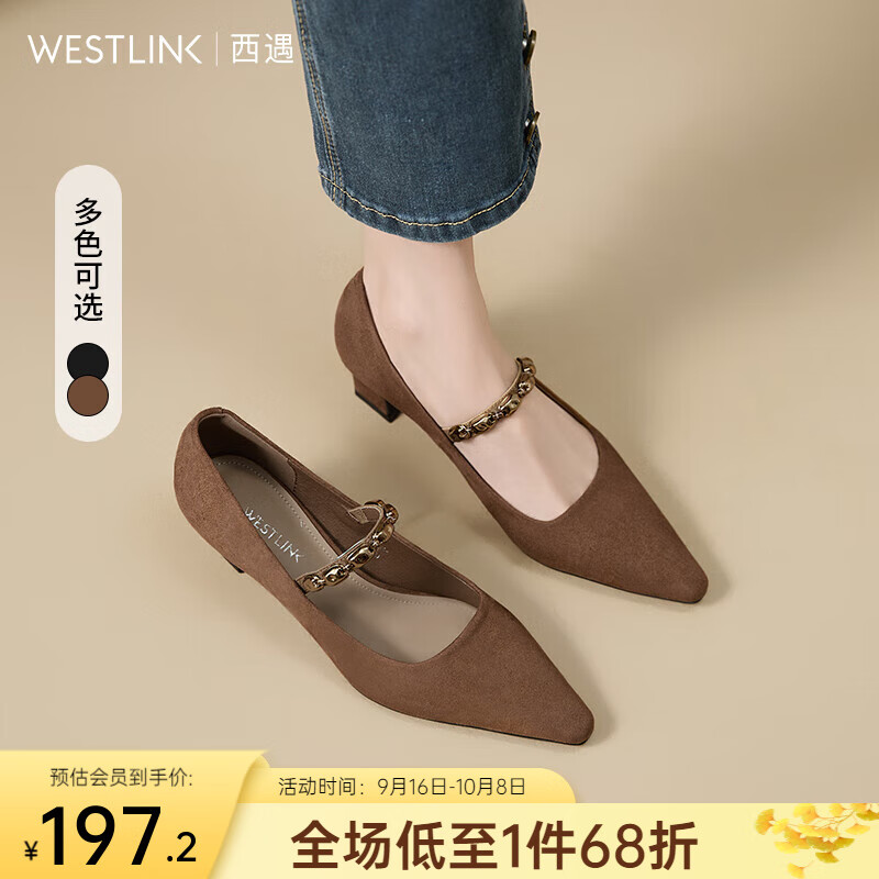 西遇尖头高跟鞋女2025新款秋季绒面复古玛丽珍鞋细跟单鞋 棕色 36 (230)