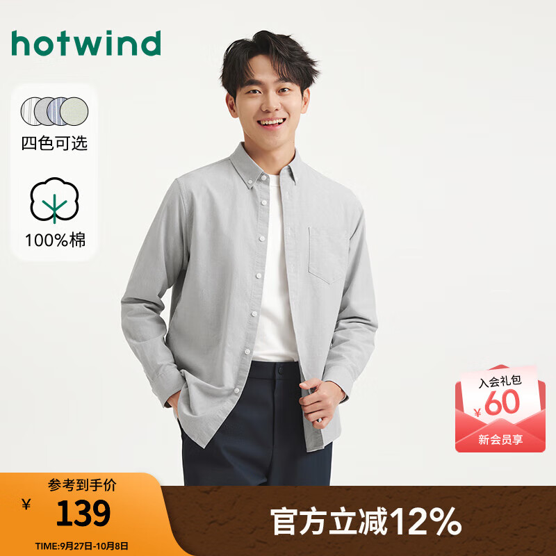 热风【商场同款】男士长衬衣2025年秋新款舒适牛津纺棉质衬衫商务衬衫 09灰色 M