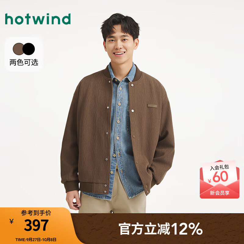 热风【商场同款】男士夹克外套上衣2025年秋新款肌理设计感棒球服外套 02棕色 M
