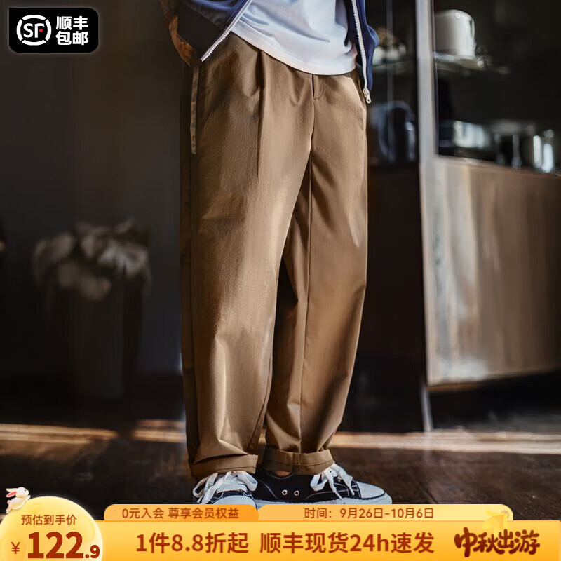 马登工装美式复古四面弹休闲裤卡其色通勤抗皱锥型薄款九分长裤子男秋 咖啡色 2XL