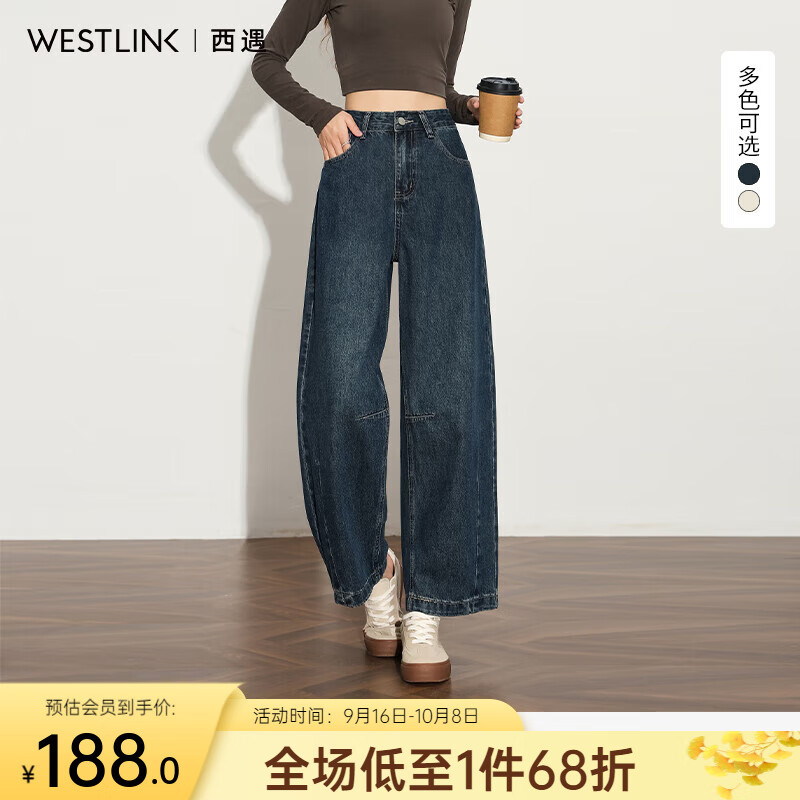 西遇复古解构拼接水洗牛仔裤女2025秋季宽松高腰显瘦弯刀阔腿裤 深蓝色(H0051280) 26 (155)