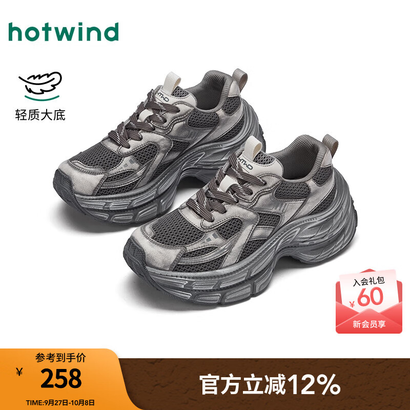 热风【商场同款】女鞋厚底老爹鞋2025年秋新款复古百搭增高运动休闲鞋 09灰色 39