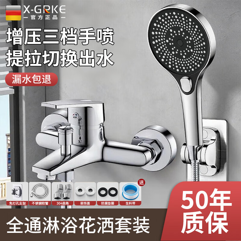 X-GRKE【德国】淋浴花洒套装浴室洗澡花洒全套一体式三联混水阀冷热龙头 【混水阀套装】三档增压大面板 防溅出水嘴丨赠全套原装配件