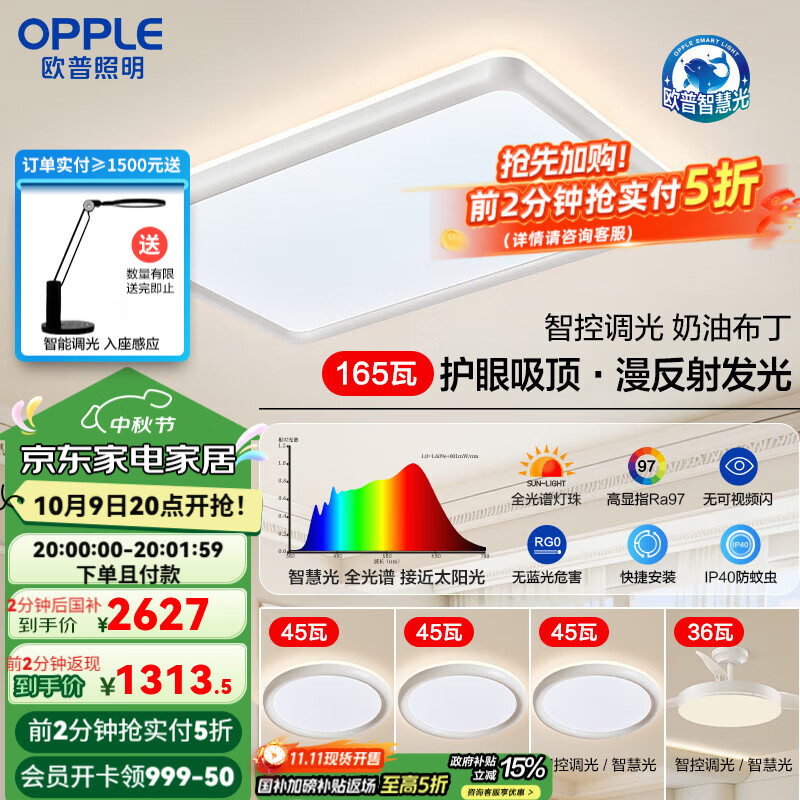 欧普25新-欧普LED全光谱教室级儿童护眼吸顶灯具饰客厅卧室灯布丁TC A7【3室2厅-5灯】