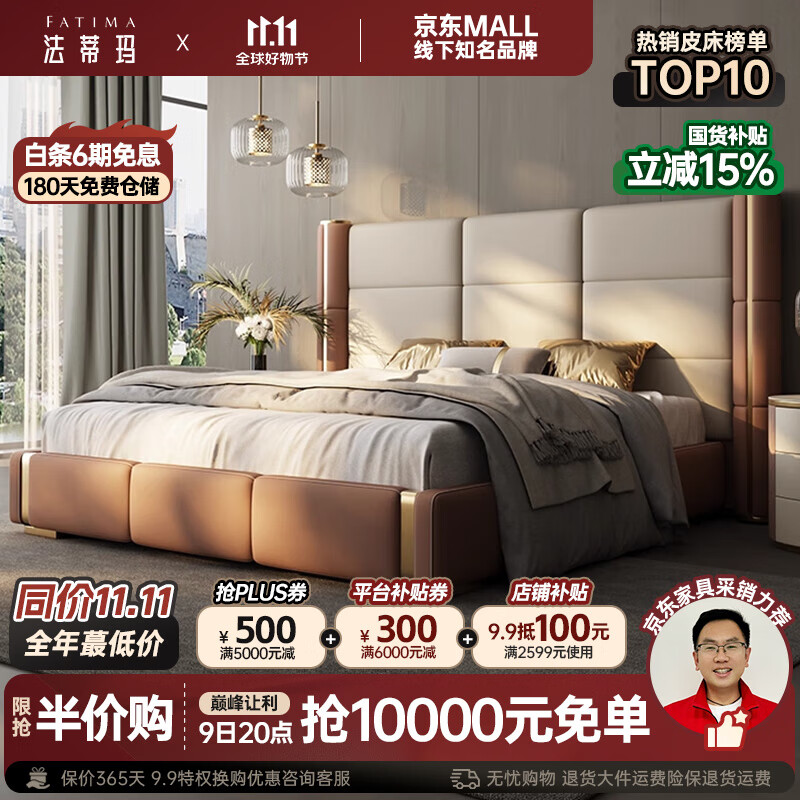 法蒂玛法蒂玛2025新款高级感意式现代简约轻奢真皮大床头层牛皮主卧高靠 床+床头柜*1 1.8*2米框架床