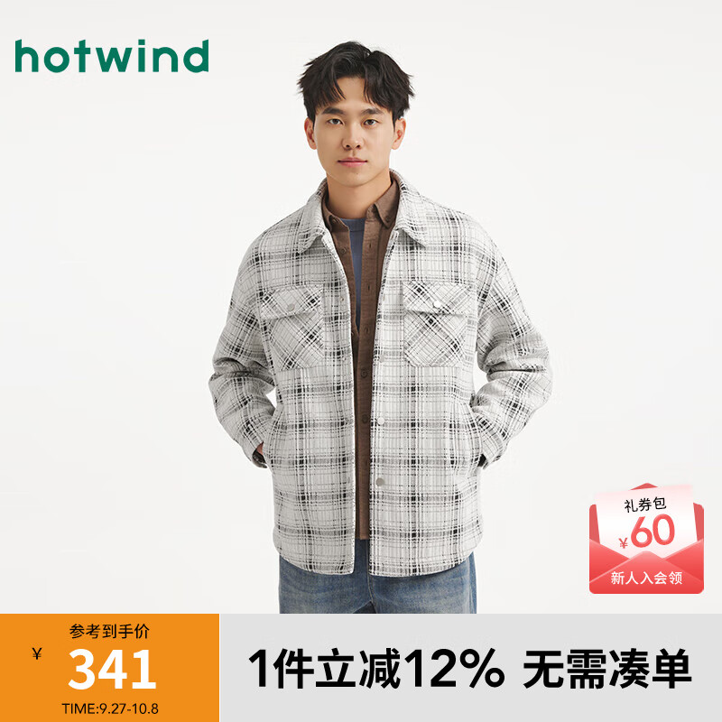 热风男士夹克外套上衣2025年秋季新款休闲黑白格纹潮流翻领夹克 68白黑 L