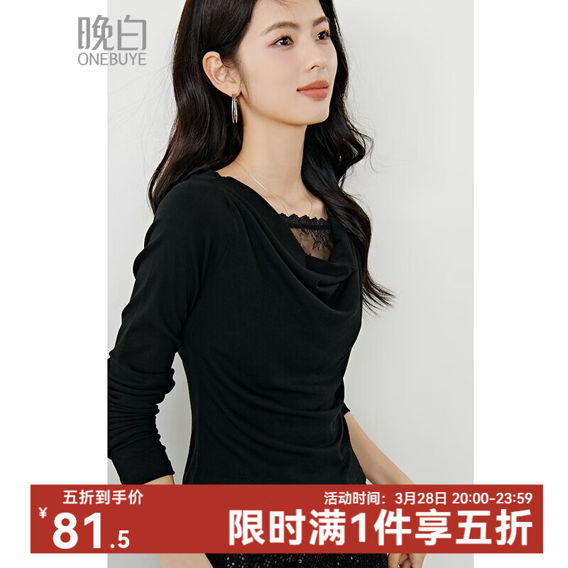 晚白【新品】2026年春款时尚拼接堆堆领上衣亲肤柔软修身舒适打底衫女 黑色 L