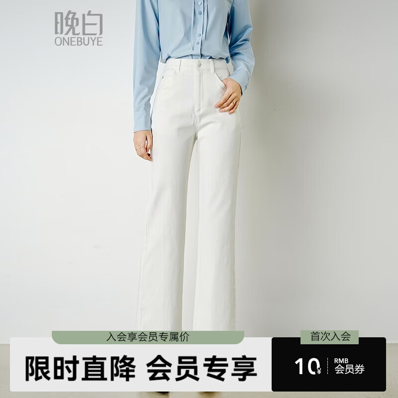 晚白【新品】2026春款休闲棉料裤子亲肤舒适高腰显瘦直筒窄版阔腿裤女 白色 27