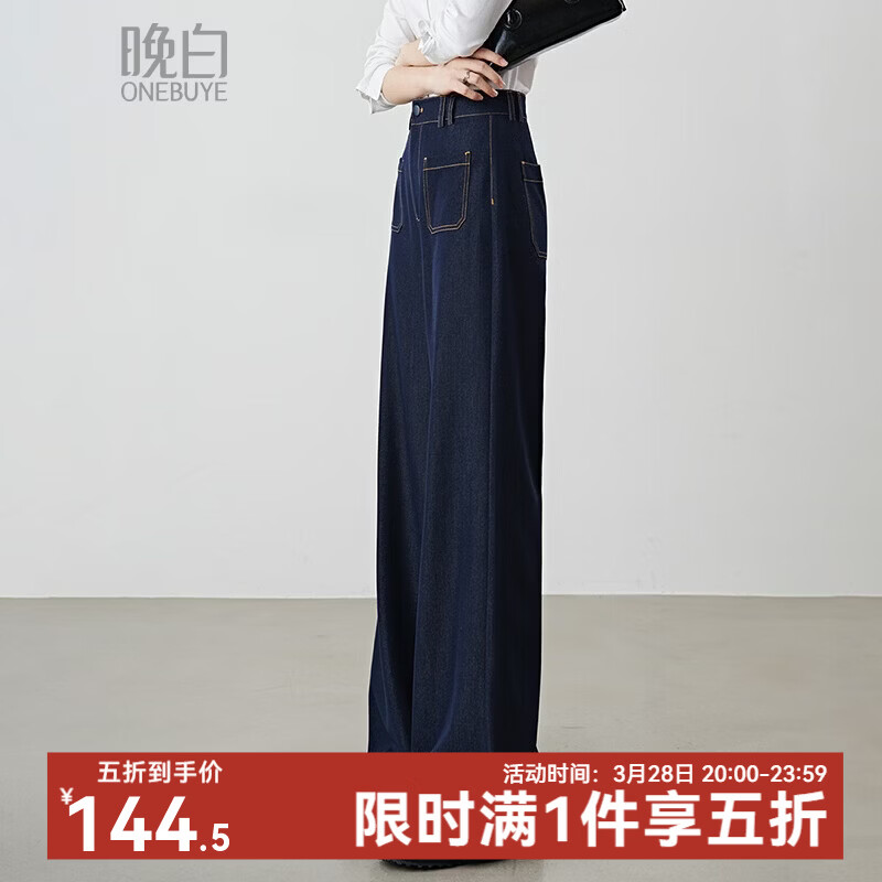 晚白2026春款经典高腰巨显瘦牛仔裤天生直腿不易掉色爆款窄版阔腿裤女 深蓝色 27