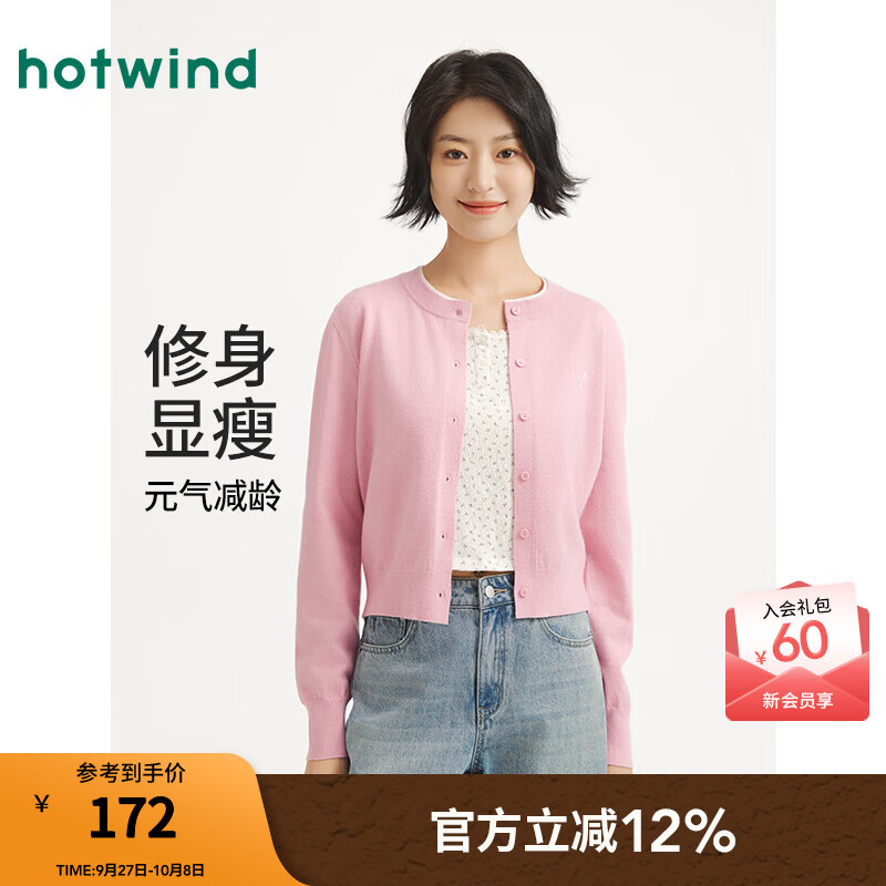 热风【商场同款】女士长袖针织衫2025年秋季新款气质撞色圆领内搭开衫 14粉红 XL