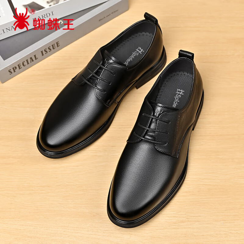 蜘蛛王皮鞋男士春秋季真皮商务正装系带男鞋结婚新郎德比鞋 黑色 42