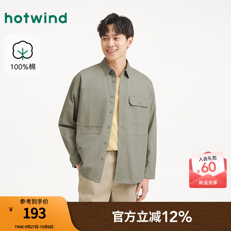 热风男士长袖衬衫2025年秋季新款工装风宽松大口袋衬衣内搭上衣 07绿色 S