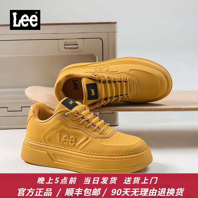 Lee男鞋新款松紧带休闲鞋男潮流男士经典板鞋低帮男生舒适增高鞋子男 黄色 41 【偏大/请拍小一码】