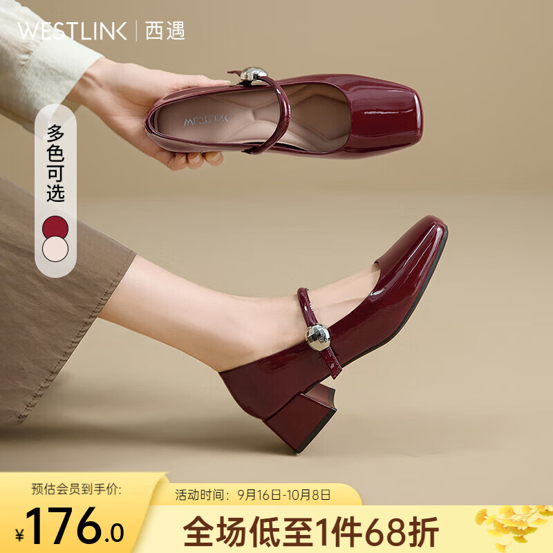 西遇粗跟玛丽珍鞋女2025新款秋季法式漆皮配裙小皮鞋方头中跟单鞋 酒红色 (35/8/9预售10月17日) 37 (235)