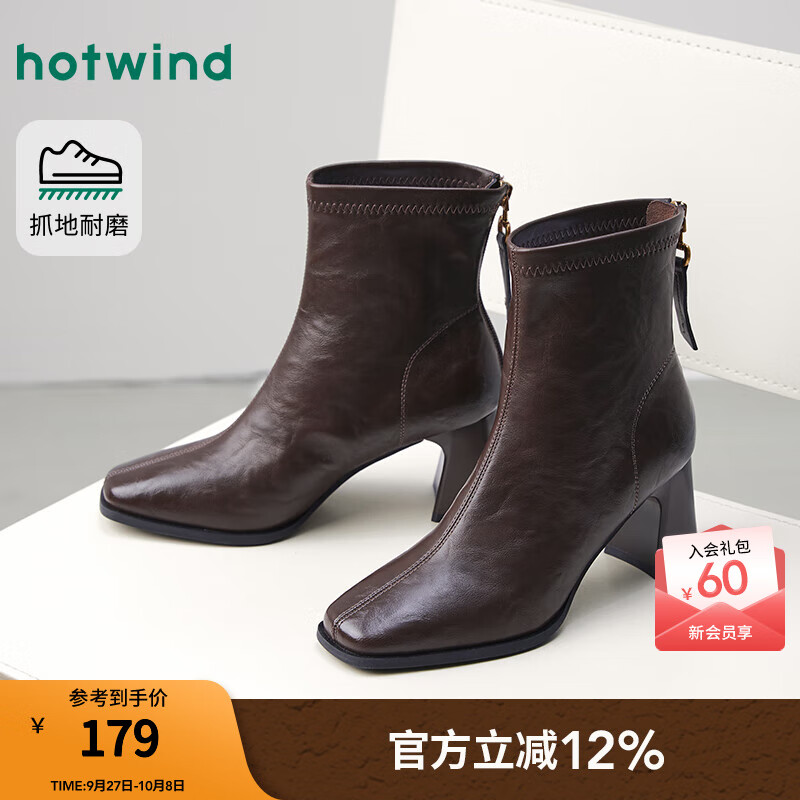 热风高跟时装靴2025年冬季新款法式方头粗跟短靴通勤休闲靴子女鞋 02棕色 38