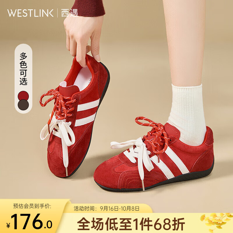 西遇(Westlink)平底德训鞋女2025新款秋季超火复古双鞋带棕色休闲轻便运动鞋 红色 (预售15天) 36 (230)