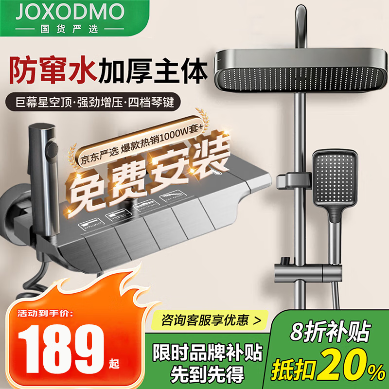 JOXODMO花洒淋浴套装按键钢琴增压喷头全套混水阀卫浴十大品牌 【包安装】枪灰色控温花洒 【京东快递·明日送达】|送免费安装|不满意包邮退