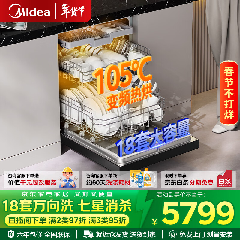 美的(Midea)【万向X6S MAX】洗碗机嵌入式18套大容量家用洗碗机四星消毒七星消杀一键洗烘UV杀菌105℃热风烘干 嵌入式 X6S Max 黑色款【支持鸿蒙智联】