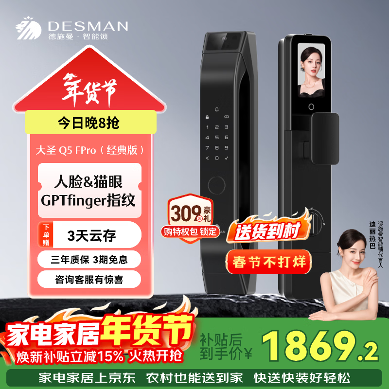 德施曼(DESMAN)智能门锁人脸识别猫眼大屏指纹密码智能锁大圣Q5FPro(经典版) 经典版