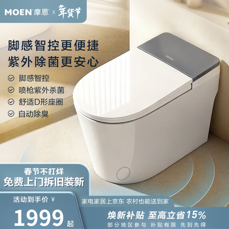 摩恩(MOEN)智能马桶小户型卫生间一体式坐便器家用加热SW1181C 【脚感冲水翻盖翻圈 自动除臭】智能一体坐便器