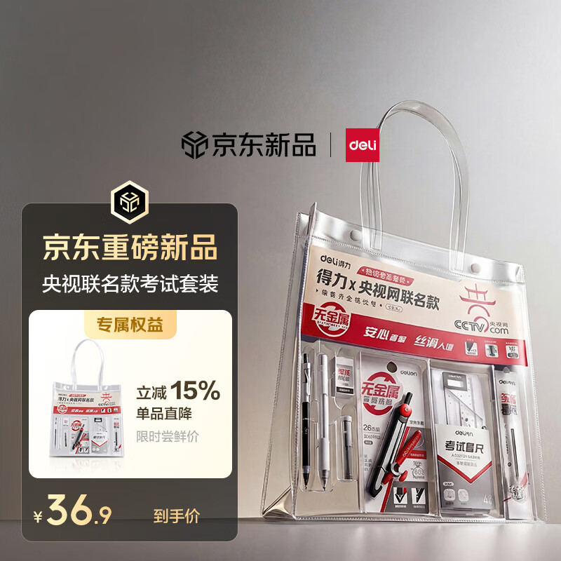得力央视联名0金属手提袋考试套装14件套 考试中高考专用中性笔2B涂卡笔圆规 金榜题名SG121