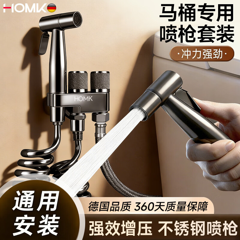 HOMK【德国】马桶冲水喷枪马桶伴侣卫生间角阀一进二出不锈钢高压水枪 【强效增压】马桶伴侣不锈钢喷枪【枪灰色】 加厚不锈钢丨防锈防漏丨通用安装