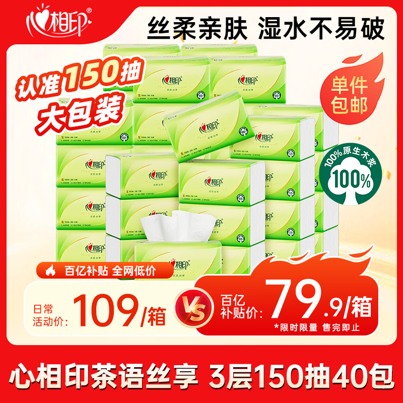 心相印抽纸 面巾纸茶语丝享 3层150抽*40包真S码 纸巾 整箱