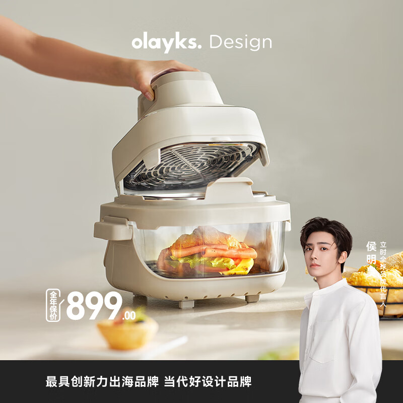 olayks立时 空气炸锅 双层炸锅 家用分体空气炸锅智能触控多功能玻璃无涂层可外带5.5L 大地色