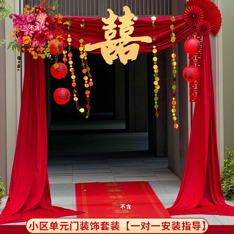 2026农村结婚庭院子装饰婚礼自建房大门口婚房布幔场景布置套装 小区单元门装饰套装1