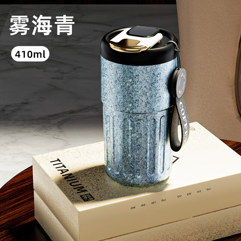 大卡高颜值咖啡杯智能温显保温杯便携纯钛水杯随行茶杯高档生日礼物 雾海青410ml【纯钛+礼盒】
