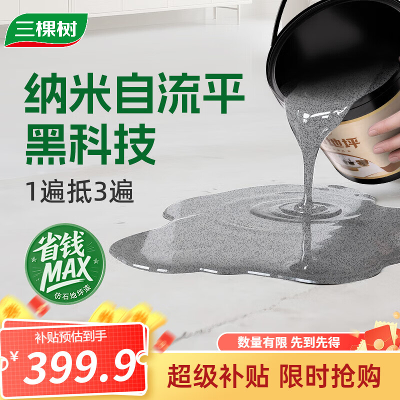 三棵树漆仿大理石地坪漆自流平改色液态水泥室内外环氧彩砂家用涂料 芝麻灰9KG