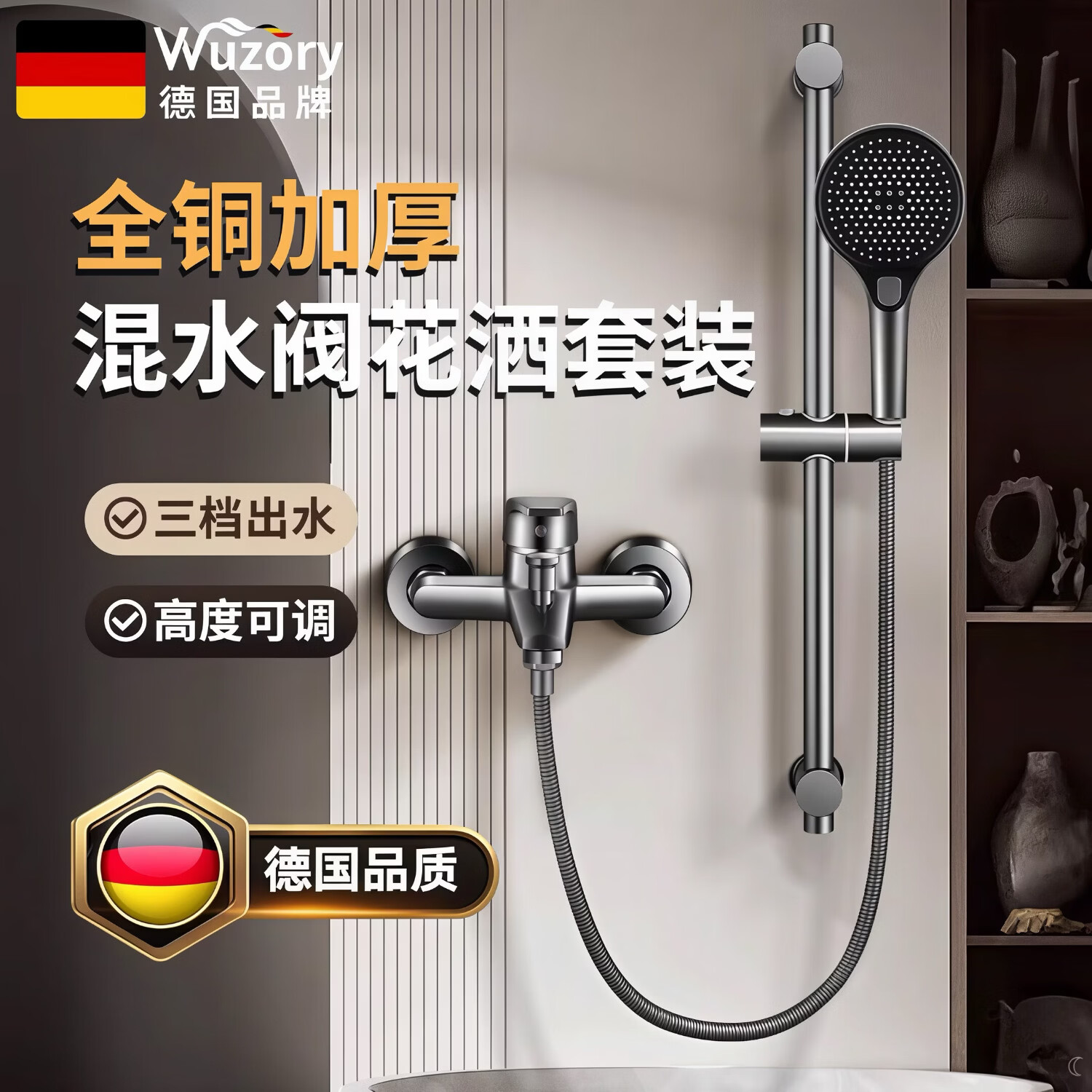 WUZORY【德国】全铜主体花洒淋浴套装增压沐浴花洒浴室卫生间升降套装 【全铜主体】升降增压花洒套装 三档调节丨分体式不占空间
