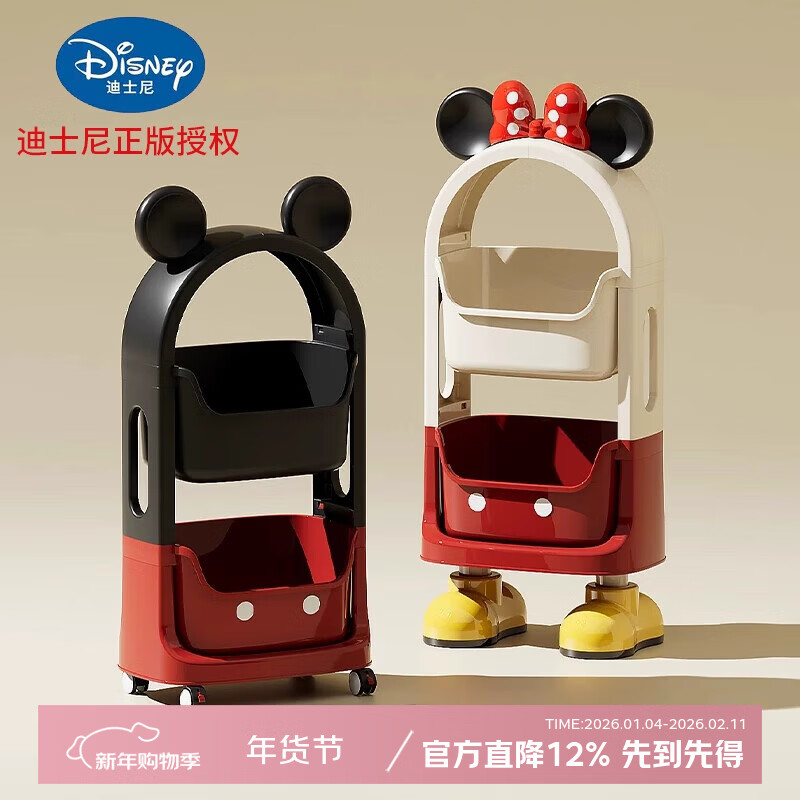 吱凡日本迪士尼正版米奇零食置物架可移动小推车客厅落地式床边收纳柜 【静音滑轮3层】波点白【正版授权 蝴蝶结可拆卸】