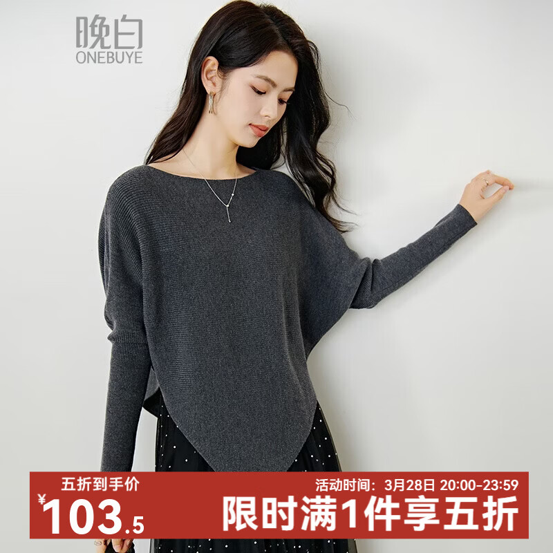 晚白【苹果型身材友好超显瘦】2026年春款蝙蝠袖大码显瘦格雷灰针织衫 灰色 M