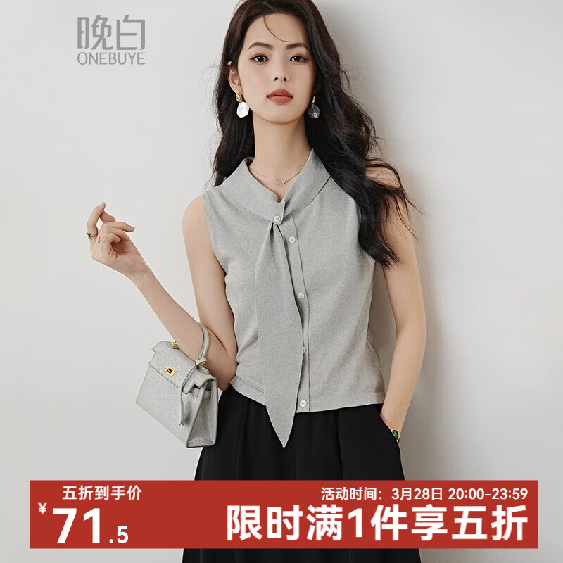 晚白2026年春款时尚格雷灰叠穿神器设计感绑带翻领显白无袖针织衫女 浅花灰 S