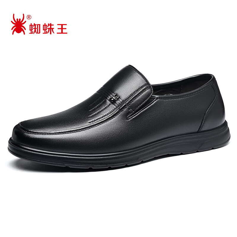 蜘蛛王皮鞋男牛皮套脚商务休闲鞋舒适驾车中年爸爸皮鞋 480785A 黑色 43