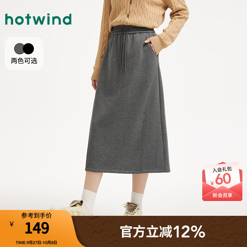 热风女士半身裙2025年冬季新款针织半裙松紧腰直筒休闲半身裙 09灰色 L
