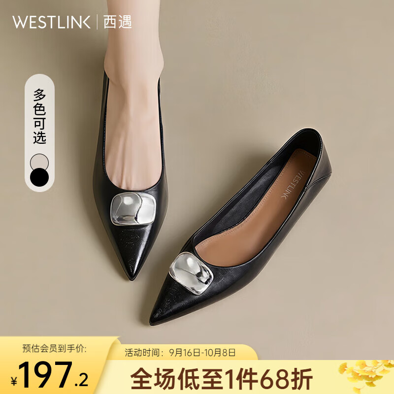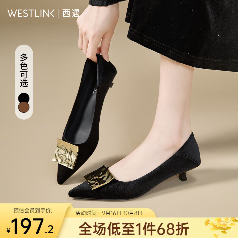 西遇(Westlink)西遇法式单鞋女2025新款秋季法式绒面方扣百搭通勤女鞋细跟尖头鞋 黑色 39 (245)