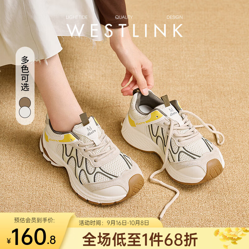 西遇厚底老爹鞋女2025新款秋季复古丑萌增高跑步休闲鞋户外运动鞋 米色 36 (230)