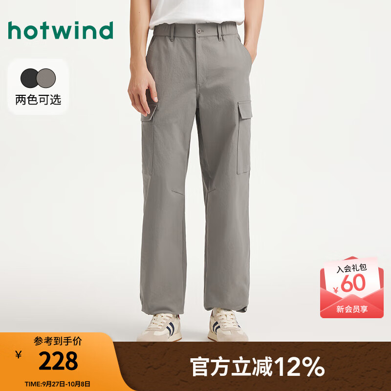 热风【商场同款】男士工装裤2025年秋季新款通勤束脚裤户外运动长裤子 125杏灰 L