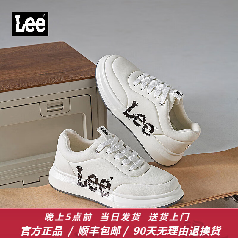 Lee男鞋新款低帮小白鞋男厚底增高休闲鞋百搭白色板鞋潮流时尚鞋子男 白色 43 【偏大/请拍小一码】